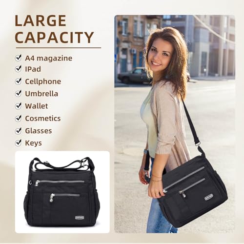 HOT ! Crossbody Bag for Women, Multi Pockets Waterproof Nylon Shoulder Handbag, Lightweight Crossbody Purse for Ladies