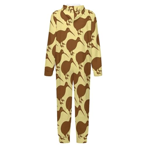 Kiwi Birds Print Kids Jumpsuits One-Piece Warm Jumpsuits for Boys Girls Flannel Outfits Rompers 1