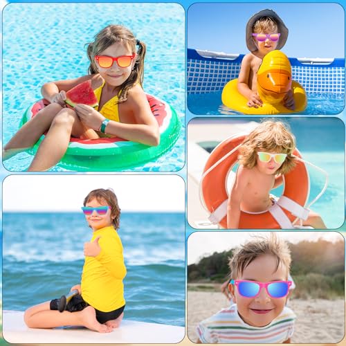 • [UV 400 Protection Kids Party Sunglasses]: UV 400 protected lenses with added polarization for eliminating glare which can lighten the fatigue state of your children's eyes. At the same time, kids sunglasses can maintain clear vision and natural color. Prefect sunglasses party favors for kids at summer beach or pool party, even as end of the year gifts for students.