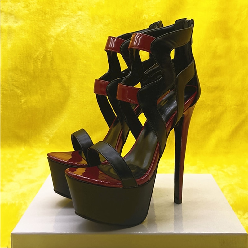 Daring Black and Red Women's High Heel Sandals - Edgy Cut-Out Design with Stiletto Heels, Perfect for Evening Wear and Special Events 12