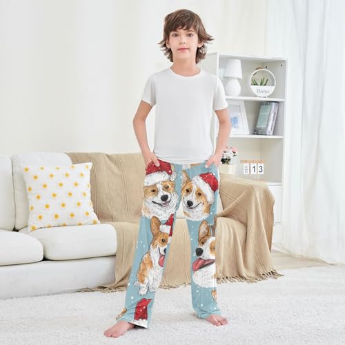 Corgi Dog Snow Boys Long Pants Soft Trousers Elastic Waist Kids Lounge Bottoms with Pockets S-XL 6