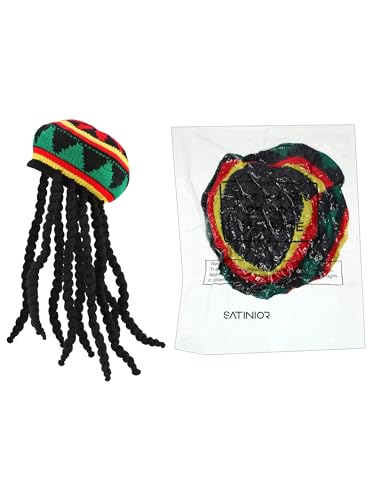 HOT ! SATINIOR Rasta Hat with Black Dreadlocks Wig Rasta Wig with Dreads Funny Hat, 1 Piece, Size 17. 3