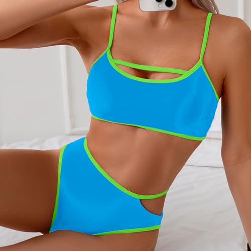 HOT ! MXVPY Women's High Waisted Bikini Set - Cutout Two Piece Swimsuit with Adjustable Straps & Color Block