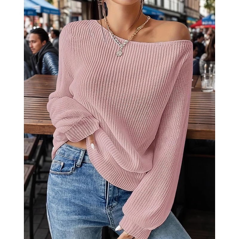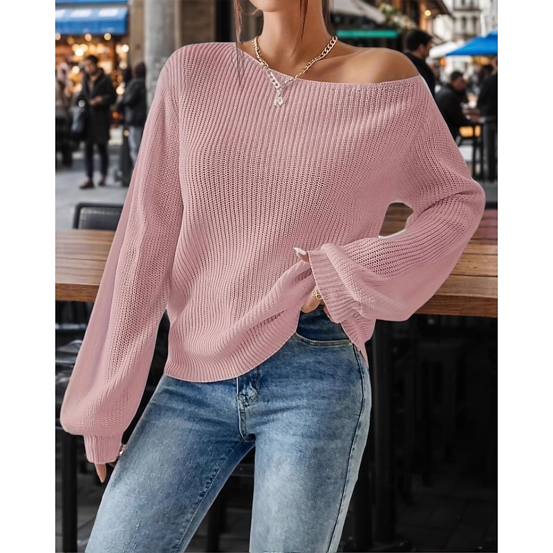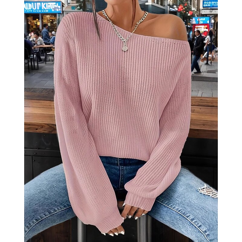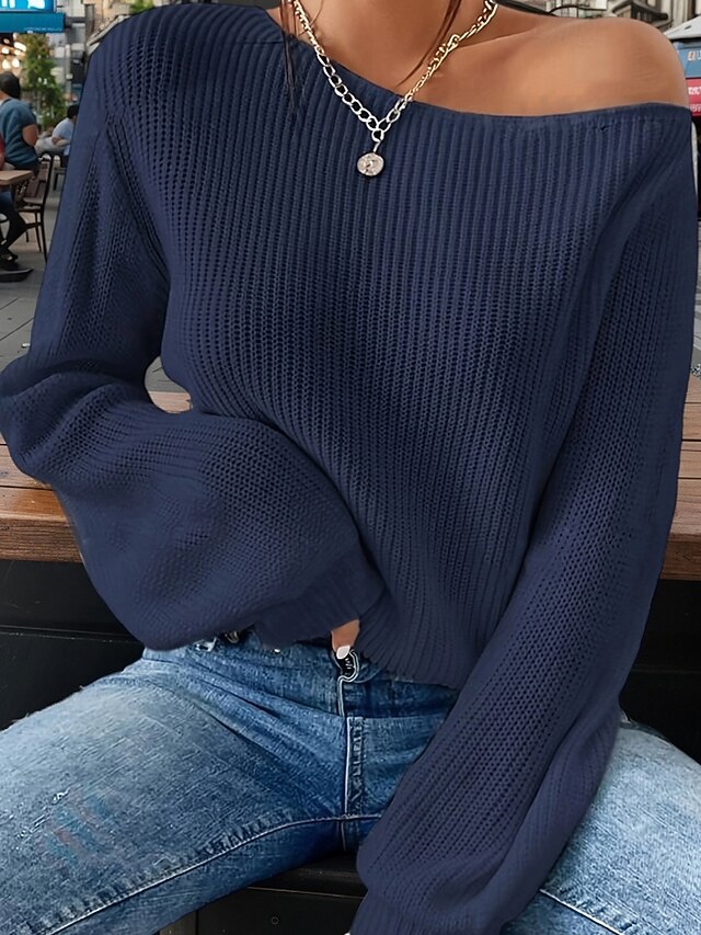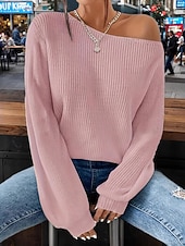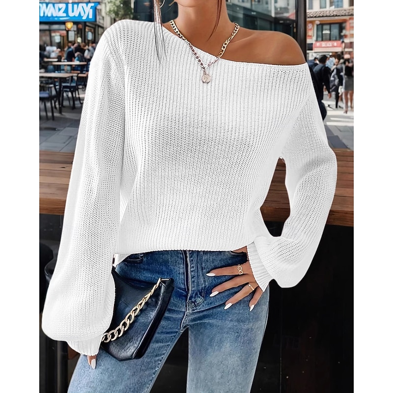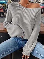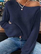 More information about Women's Sweater Pullover Streetwear Casual Solid Color Off Shoulder Knitted Long Sleeve Regular Tops Knit Daily Holiday Going out Black White Fall Winter