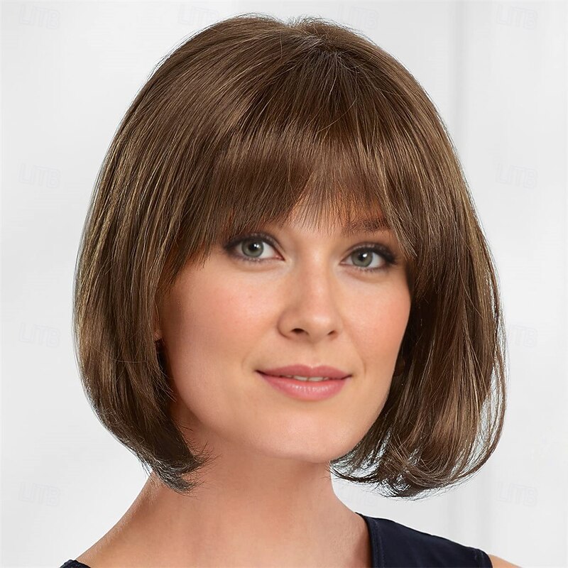 $20.99 - Chin-Length Bob Wig with Natural Looking Crown and Flirty Bangs/Multi-tonal Shades of Blonde Silver Brown and Red 2025. Shop for cheap Older Wigs online? Buy at lightinthebox.com on sale today!
