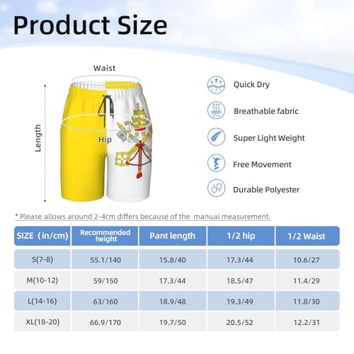 More information about Vatican Flag Youth Beach Pants, Soft and Breathable, with Drawstring Waist, Suitable for Sports and Leisure.