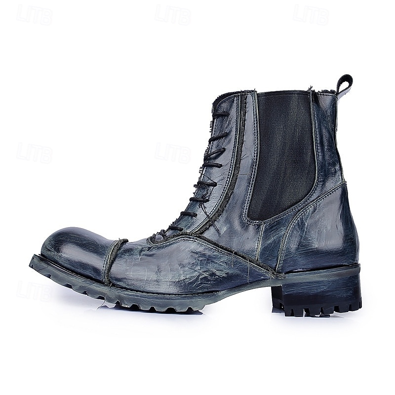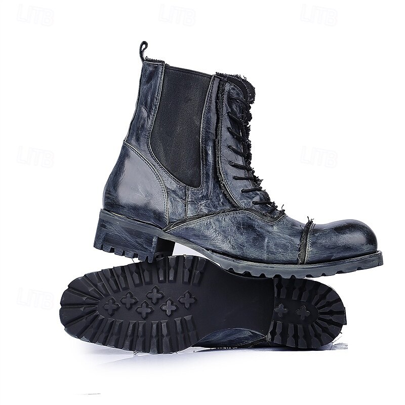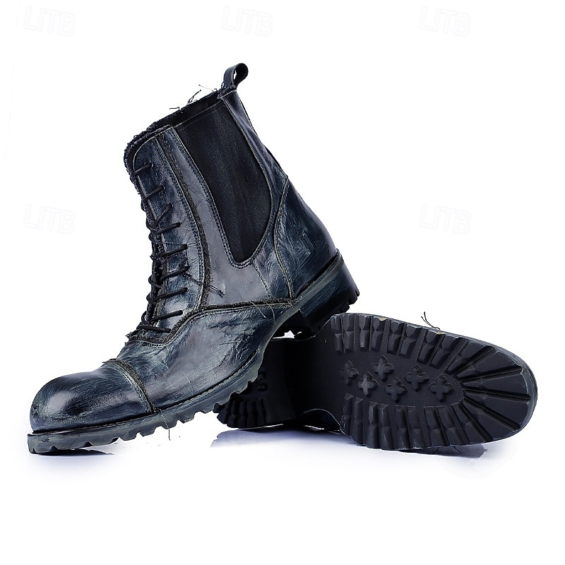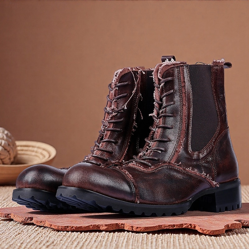 HOT ! Men's Brown Leather Work Boots – Vintage Cowhide Lace-Up Ankle Shoes with Rugged Sole for Construction, Outdoor Adventure and Casual Daily Wear