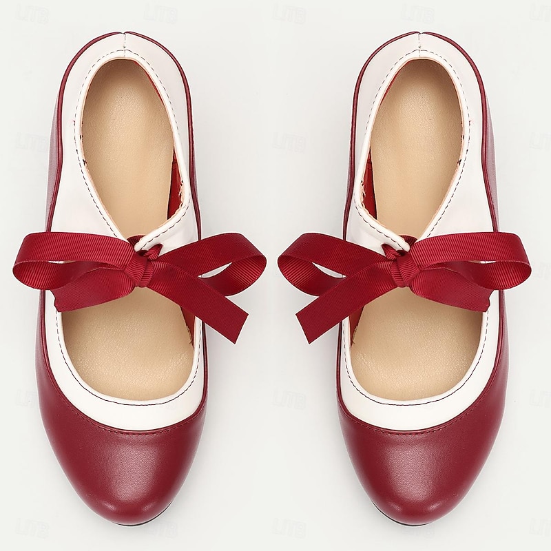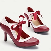 Highlights [Fabric] : Crafted from high-quality PU with synthetic leather lining, these pumps showcase a rich and vibrant two-tone design in red and white. The luxurious, smooth texture and glossy finish enhance the elegant appearance, providing a classic yet sophisticated look. [Silhouette] : These high heels feature a classic pump design with a medium-height stiletto heel, ensuring both style and comfort. The round toe shape adds a vintage touch, making them ideal for those who appreciate a blend of elegance and tradition. [Design Highlights] : The standout detail of these pumps is the stylish red ribbon tie embellishment, which adds a touch of femininity and charm. The adjustable strap feature offers a secure fit, while the color block pattern aligns with the retro trend, making these shoes a fashionable choice for the coming year. [Occasions] : Perfect for parties, daily wear, or professional settings, these pumps are versatile enough to elevate any outfit. Whether you're attending a formal occasion or adding flair to your work attire, these shoes are sure to make an impression. [Size Notice] : These pumps are available in a range of sizes from US6 to US10, fitting EU36 to EU41, ensuring a comfortable fit for a variety of foot sizes. The standard sizing recommendation allows you to select your usual size with confidence.