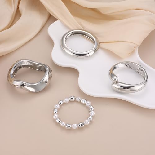 MOZAKA 4PCS Chunky Gold Bangle Bracelets for Women Trendy Wide Wrist Cuff Bracelets Stack Statement Bangle Fashion Jewelry Gift 4