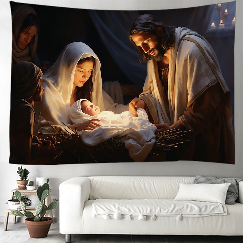 Christmas Decorations Nativity Scene Jesus Hanging Tapestry Wall Art Large Xmas Tapestry Mural Decor Photograph Backdrop Blanket Curtain Home Bedroom Living Room Decoration