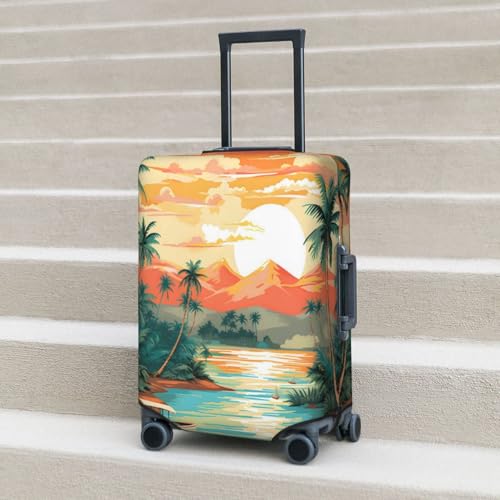 HOT ! Hawaiian Tropical Coconut Seaside Luggage Cover Elastic Travel Suitcase Covers, Anti Scratch Dust Proof Baggage Covers, Fits 22-24 inch Suitcases