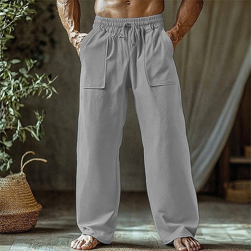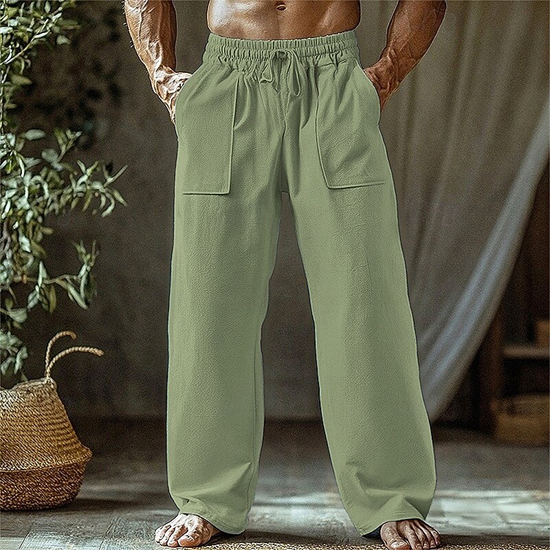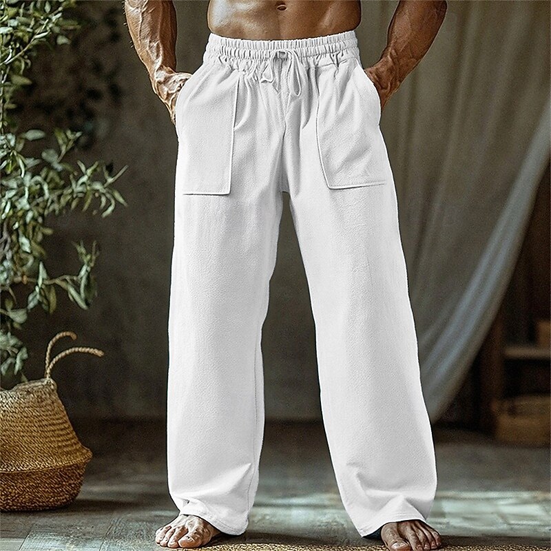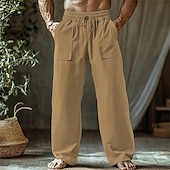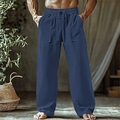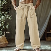 More information about Men's Linen Pants Trousers Beach Pants Pocket Elastic Waist Drawstring Plain Comfort Breathable Vacation Daily Holiday Hawaiian Boho Black White