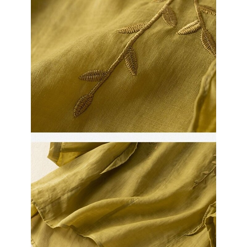 Women's Cotton Linen Shirt Floral Basic Ethnic Casual 3/4 Length Sleeve V Neck Regular Tops Daily Embroidered Yellow Navy Blue Purple Orange Apricot Summer 8