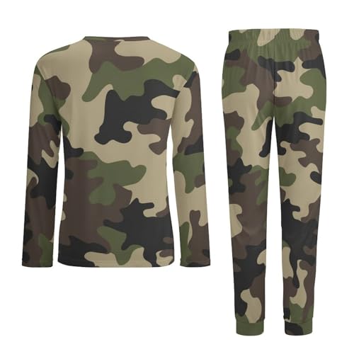 Men's Pajama Suit Army Camo Green Sleepwear Long Sleeve Top & Bottom Pant Loungewear PJ Set Cozy Nightwear 3