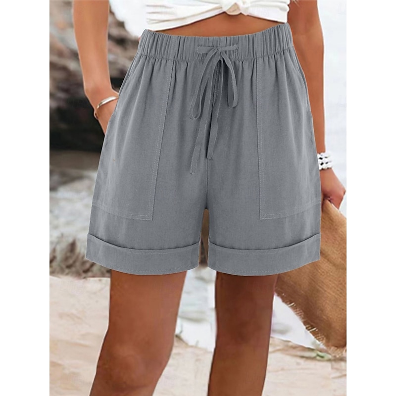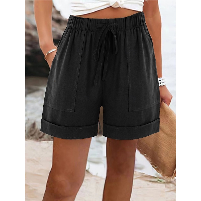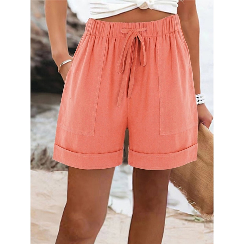More information about Women's Cotton Linen Shorts Chinos Shorts Basic Short High Waist Plain Pocket Elastic Waistband Comfy Soft Comfortable Micro-elastic Outdoor Street Black Pink Army Green Blue Summer Spring Regular Fit