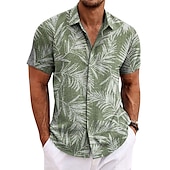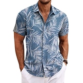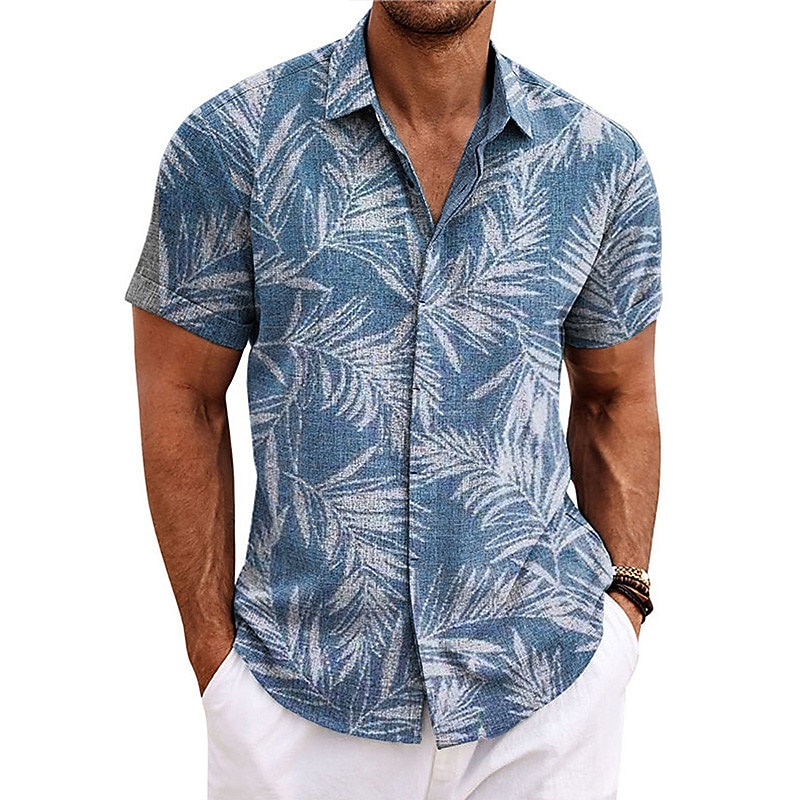 HOT ! Men's Shirt Linen Shirt Beach Shirt Summer Hawaiian Shirt Leaves Outdoor Street Royal Blue Blue Purple Green Short Sleeves Turndown Summer Spring Clothing Apparel Print