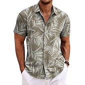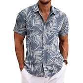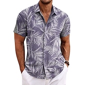 More information about Men's Shirt Linen Shirt Beach Shirt Summer Hawaiian Shirt Leaves Outdoor Street Royal Blue Blue Purple Green Short Sleeves Turndown Summer Spring Clothing Apparel Print