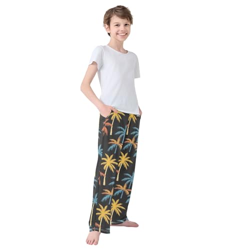 Pajama Pants Lounge Sleep PJ Bottoms Sleepwear Elastic Waist Drawstring S Palm Trees Black 3