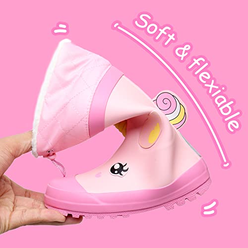 RAINANGEL Kids Rain Boots for Girls and Boys with Fur Lining, Waterproof Warm Winter Rubber Rain and Snow Boots-with Fun Printed & Colors for Toddlers and Kids 2