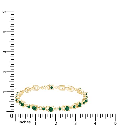 • Adds A Touch Of Nature-Inspired Beauty To Your Leaf Shape Tennis Bracelet 14k Yellow Gold Over Sterling Silver "8.25"Makes a Standout Addition to Your Collection with Round Shape Simulated Emerald