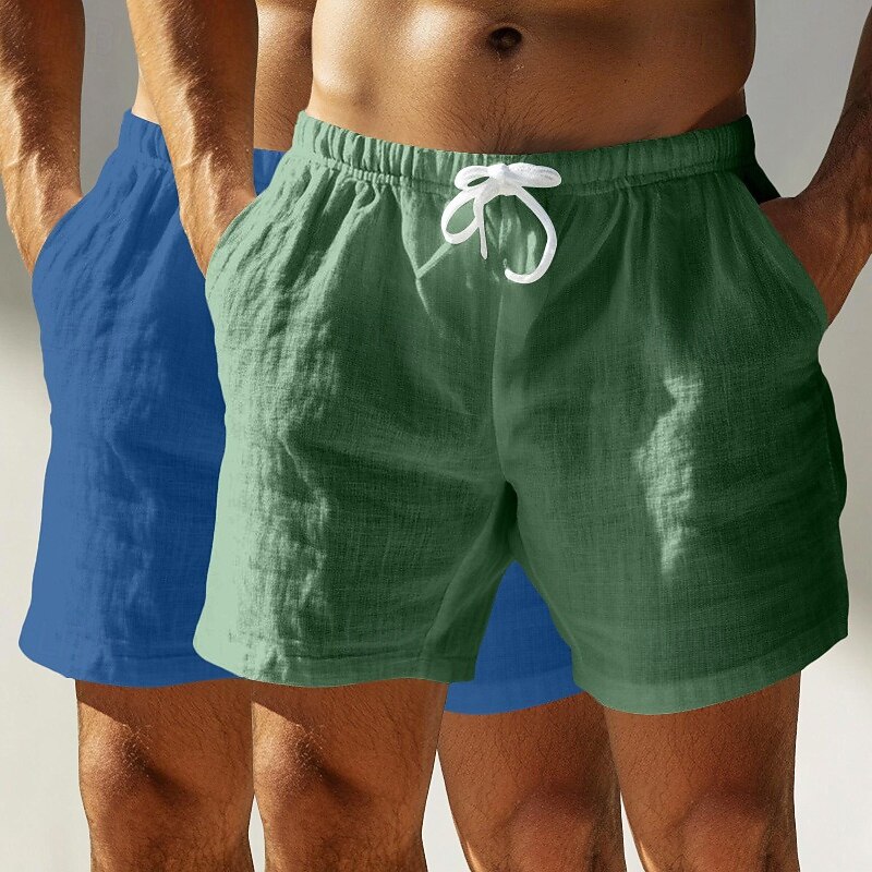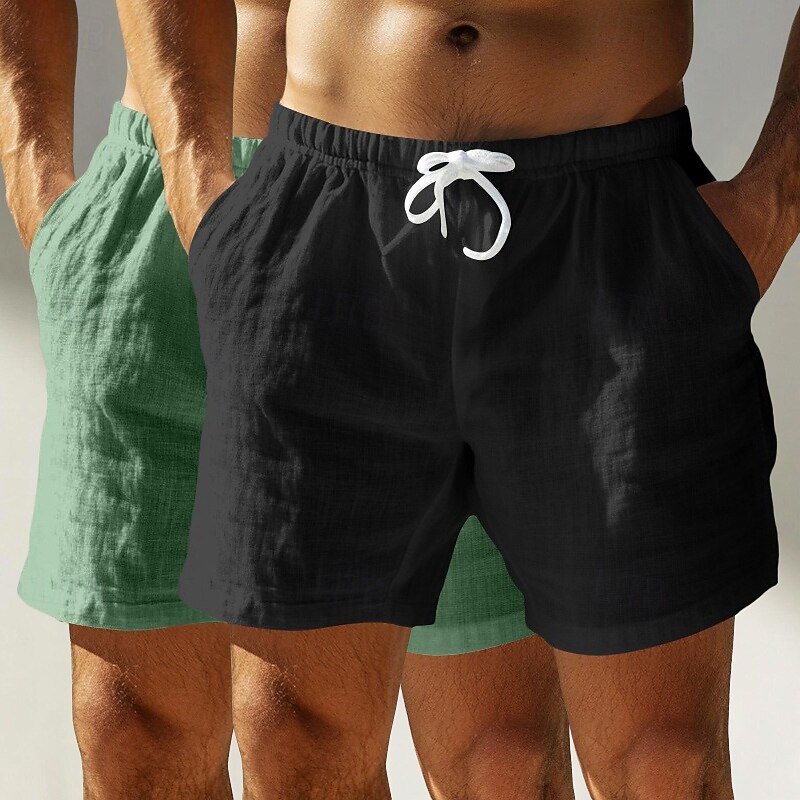 Men's Shorts Linen Shorts Summer Shorts Beach Shorts Pocket Elastic Waist Drawstring Plain Comfort Breathable Short Outdoor Daily Running Vacation Fashion White+Green White+Black 2