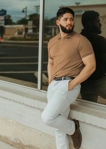 Collared Muscle Shirts for Men Ribbed Knit Slim Fit Polo Shirts Short Sleeve, Mens V Neck T Shirts Casual Stylish 1