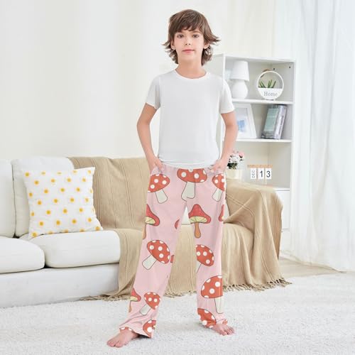 Mushroom Red Boys Pants Boys Athletic Pants Long Pant for Boywith Pockets Wide-Leg Size 6-14Y 5