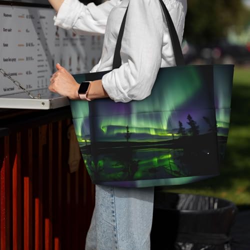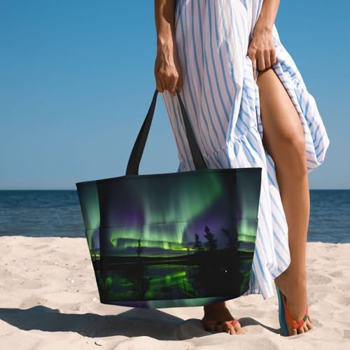 • Versatile Carrying Options Based On Needs: Sling The Dark Northern Lights Beach Bag Tote Over The Shoulder For Hands Free, And Handheld For Heavy Items. Comfortable Webbing Straps Make Transport Easy, Whether You'Re Heading To The Beach Or Using The Dark Northern Lights Bag For Shopping Or As A Swim Bag, Pool Bag.