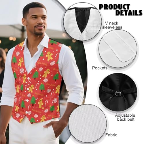 Mens Christmas Vest Slim-Fit Men's Waistcoat for Xmas Party Banquet Christmas Vest Men Santa Snowflake Snow Elk 6
