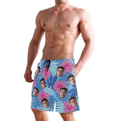 HOT ! Personalized Photo Pink Flower Men's Swim Trunks for Surfing Birthday Nephew