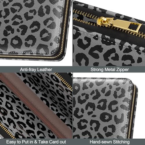 Nipichsha Womens Wallet, RFID Wristlet Wallet for Women, Cute Ladies Purse, Large Credit Card Clutch Purse, Leather Card Holder Wallets with Zipper & Phone Holder, Leopard Print 2