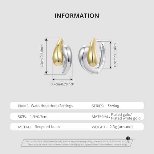 More information about WOSTU 14K Gold Plated Two-Tone Oval Hoop Earrings for Women, Water Drop Design Lightweight Huggie Earrings,925 Sterling Silver Posts Double Drop Chunky Hoops Hypoallergenic Ear Buckles