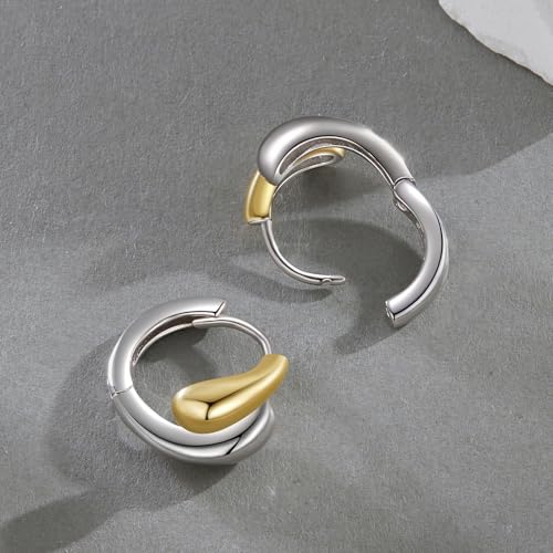 WOSTU 14K Gold Plated Two-Tone Oval Hoop Earrings for Women, Water Drop Design Lightweight Huggie Earrings,925 Sterling Silver Posts Double Drop Chunky Hoops Hypoallergenic Ear Buckles 7