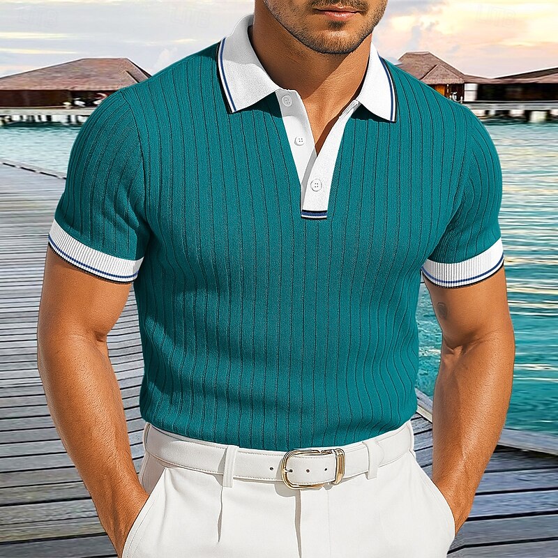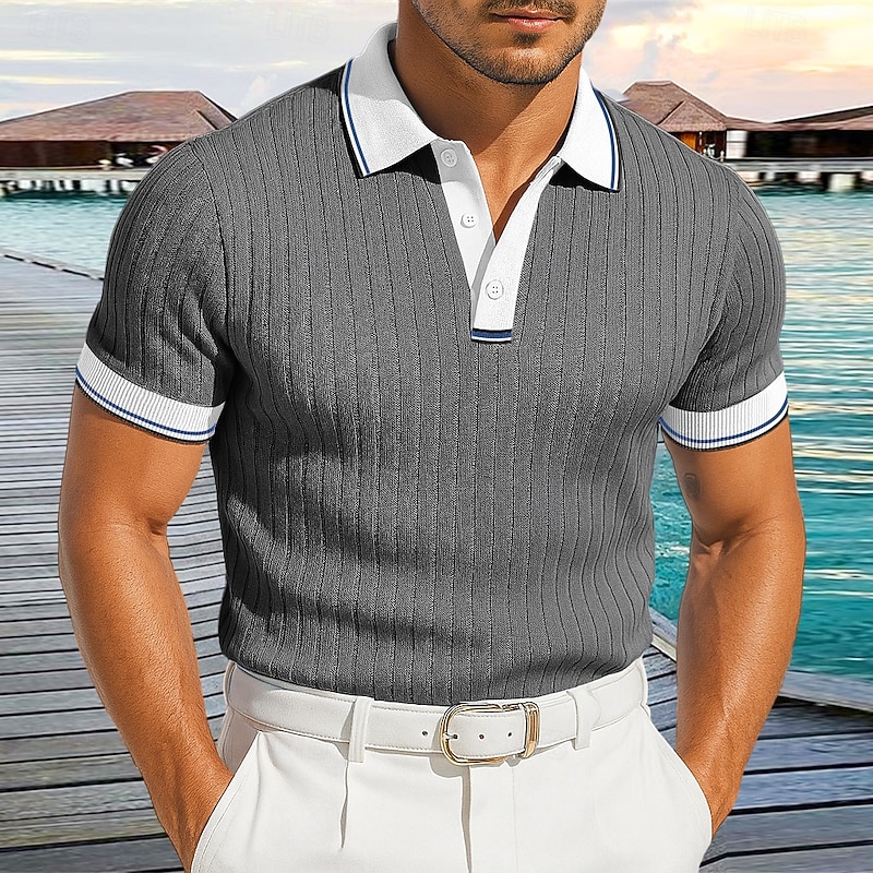 More information about Men's Muscle Shirt Golf Shirt Work Casual Lapel Ribbed Polo Collar Short Sleeve Basic Modern Color Block Patchwork Buttons Spring & Summer Slim Fit White Blue Green Grey Muscle Shirt