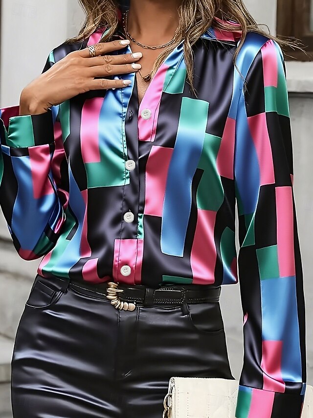 More information about Women's Shirt Work Shirt Graphic Geometric Elegant Stylish Casual Long Sleeve Shirt Collar Regular Tops Work Daily Red Blue Spring Fall Winter