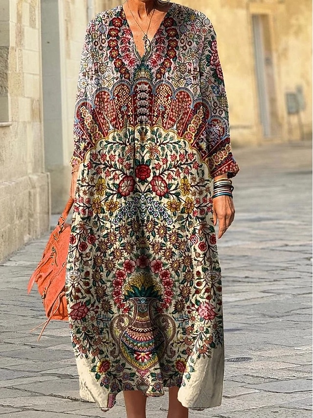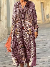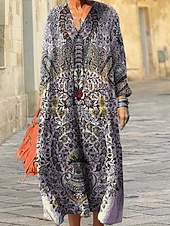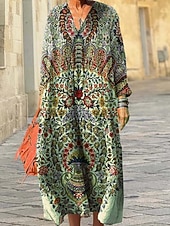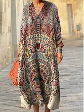 More information about Women's Midi Dress Sundress A Line Dress Vacation Casual Boho Going out Beach Loose Fit Graphic Geometric Long Sleeve V Neck Pink Blue Green Apricot Spring Fall Winter Autumn