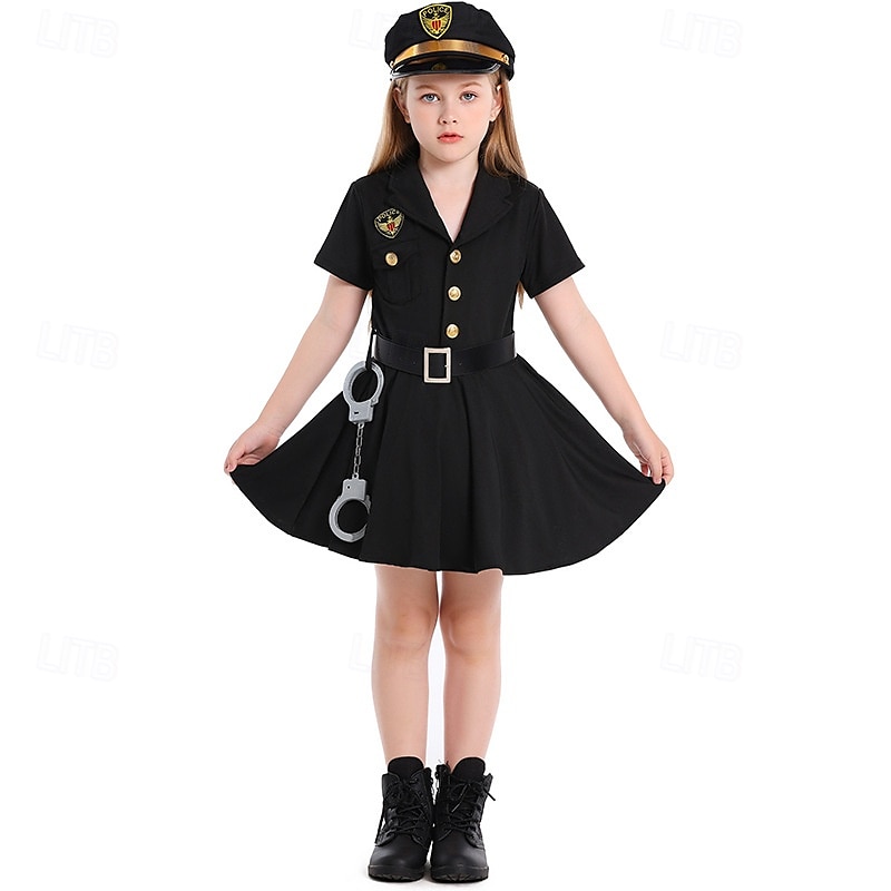 HOT ! Police Policeman Halloween Dress Costume Uniform STEM Day Career Role Play Cosplay Kid's Girls' Halloween Carnival World Book Day Performance Educational Dress Up School Event Dress Up Easy Halloween
