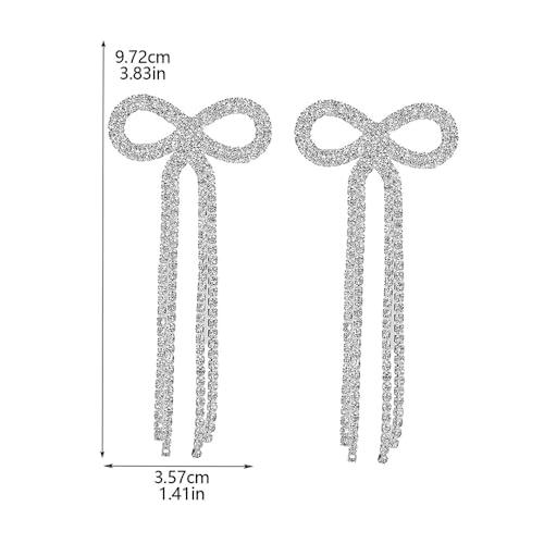 More information about Women Bridal Silver Bow Rhinestone Earrings Dangling for Women Chandelier Statement Tassel Earrings Sparkly Drop Crystal Earrings Halloween Long Dangle Earrings