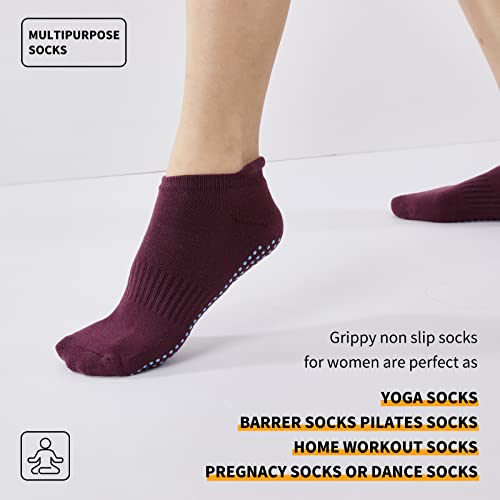 4 Pairs Non Slip Grip Socks for Pilates Yoga Barre Ballet Dance, Anti Skid Grip Socks for Women and Men 5