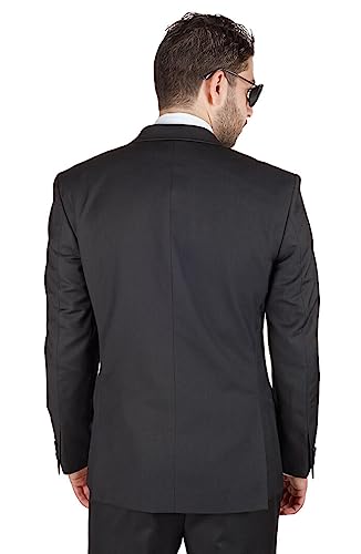 • IMPORTANT SIZING INFO: Before making your final size selection, consider this: - This suit is SLIM FIT, which means, for men with average builds, this suit fits SNUG -- both body and legs. - IF you are either muscular or husky build consider one size larger. (Remember, this is a pre-packaged suit where the pants size is 6 less than the shoulder size.)