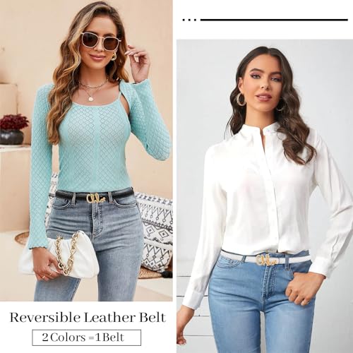 • 【Reversible Leather Belt】This is a classic, slim, reversible belt for women. Simple and elegant, it allows you to wear two colors on one belt, allowing you to customize your look. The gold lettering buckle is easily removable and interchangeable, allowing you to create a belt in different colors by changing the sides.