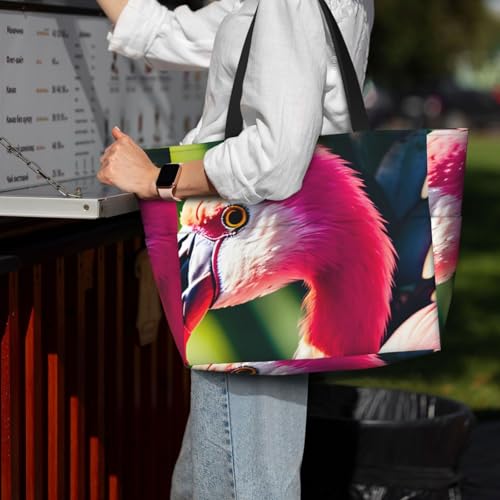 • Tropical Flamingos And Pineapples Print This Stylish Tote Bag Has Capacity That Can Easily Accommodate Your Makeup Bag, Water Bottle, Books,Art Supplies, And More. This Bag Is Made Of Polyester, Which Is Very Sturdy And Will Not Deform. Multiple Pockets Truly Simplify Your Life.