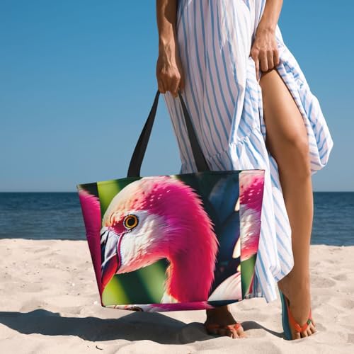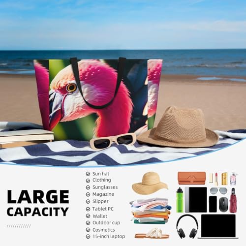 • Tropical Flamingos And Pineapples Print This Beach Tote Bag Provides A Extra Space To Accommodate All Beach Essentials. It Serves As A Versatile Bag, Perfect As A Gym Bag For Women, Travel Bag Or Pool Bag.