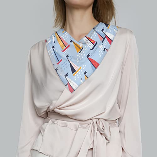 Seagull Sailboat Square Silk Hair Scarf for Women, Lightweight Summer Head Scarf for Girls Wedding Travel Yoga Handkerchief Shawl Sunscreen Scarves Hair Accessories 23.6 Inches 5