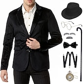 Retro Vintage Roaring 20s 1920s Outfits Suits & Blazers Panama Hat Normal Gentleman Gangster Fancy Dress Men's Christmas Halloween Masquerade Prom Club Bachelorette Party Adults' Bow Tuxedo Hat All 3