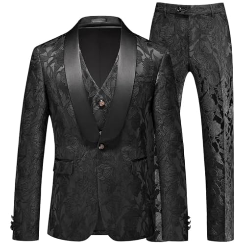 Men's 3-Piece Floral Jacquard Suit Set Wedding Prom Tuxedo with Jacket, Vest & Pants 3