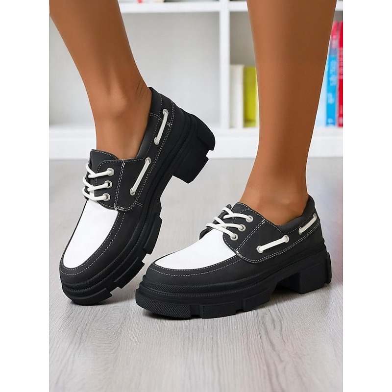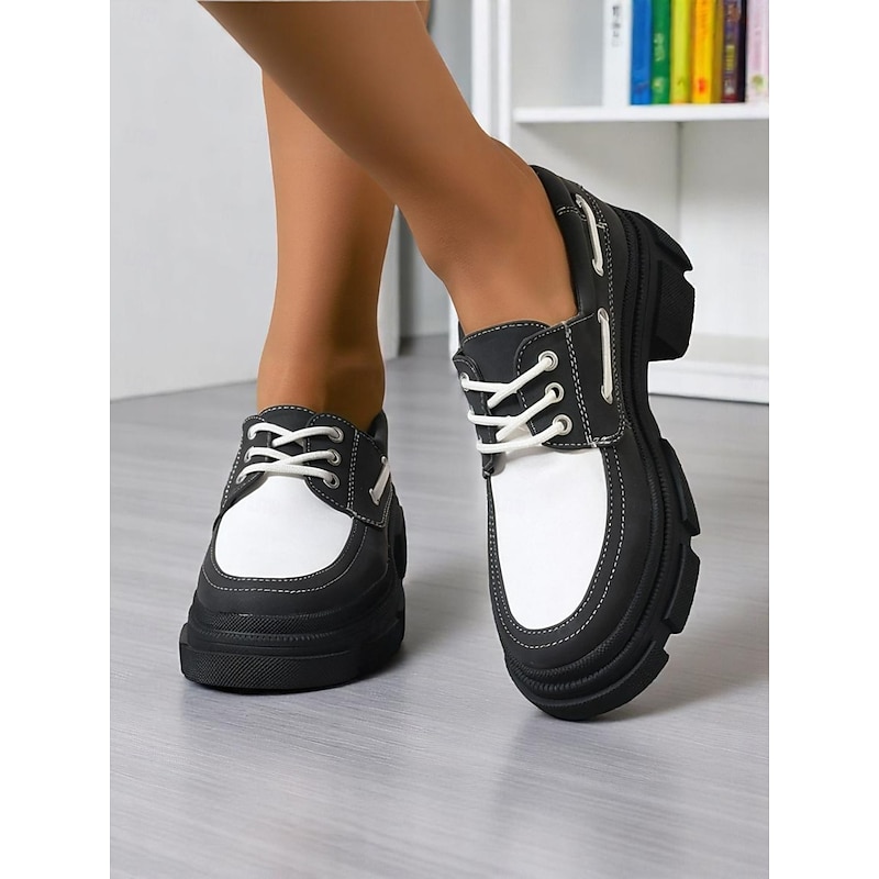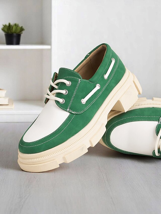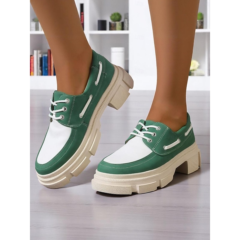HOT ! Women's Oxford Style Platform Shoes - Trendy Green and White Color Block with Chunky Sole, Ideal for Commuter Wear and Casual Office Days