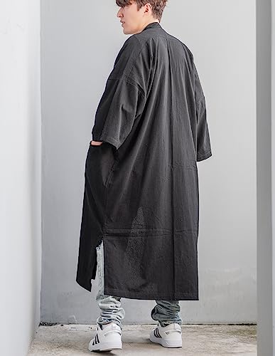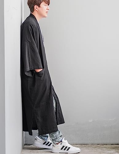 Men's Long Cotton Linen Kimono Cardigan Oversized Noragi Jacket Man Haori Summer Yukata Beach Robe 4