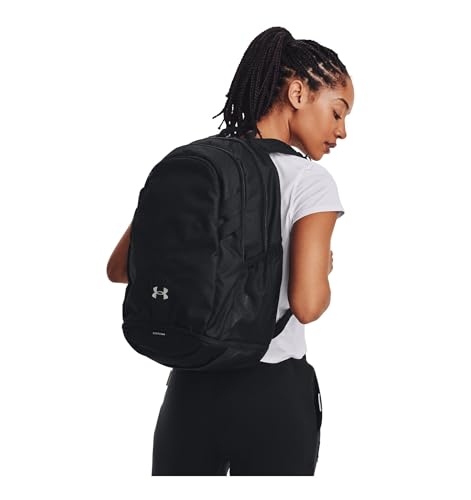 HOT ! Under Armour Unisex Hustle 5.0 Team Backpack, (001) Black/Black/Metallic Silver, One Size Fits All