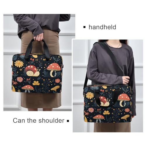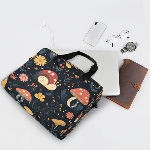 HOT ! Cute Snails Mushrooms Flower 15.6 Inch Laptop Bag Briefcase for Business, Water-Resistant Computer Bag Fits 14-16 Inch Notebook for Men Women, Office Travel Work Backpack